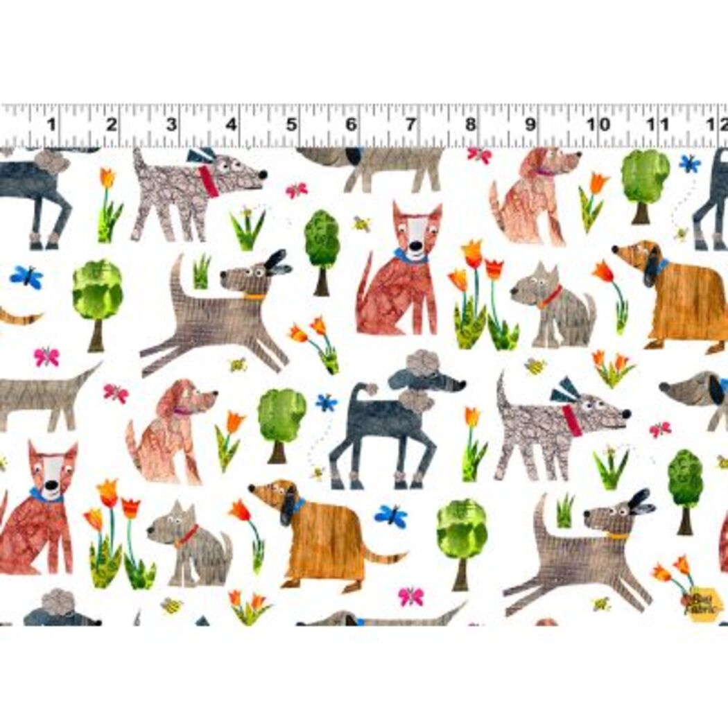 Clothworks Textiles have designed such a cute quilting fabric consisting of all shapes and sizes of dogs playing at the park.