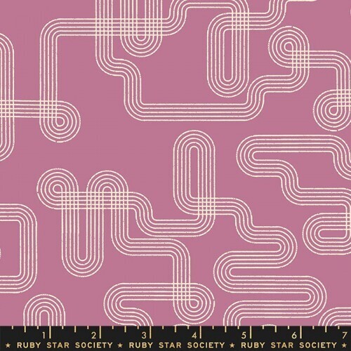 A quirky and modern pattern, Labyrinth in Lupine by Moda's Ruby Star Society is a stunning pinky patterned quilting fabric.